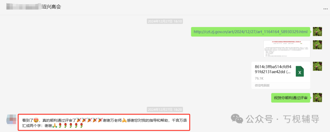 2024年,该学员通过多方协调,克服了之前的问题,2024年顺利通过评审,她自己都反复确认:是真的嘛?
