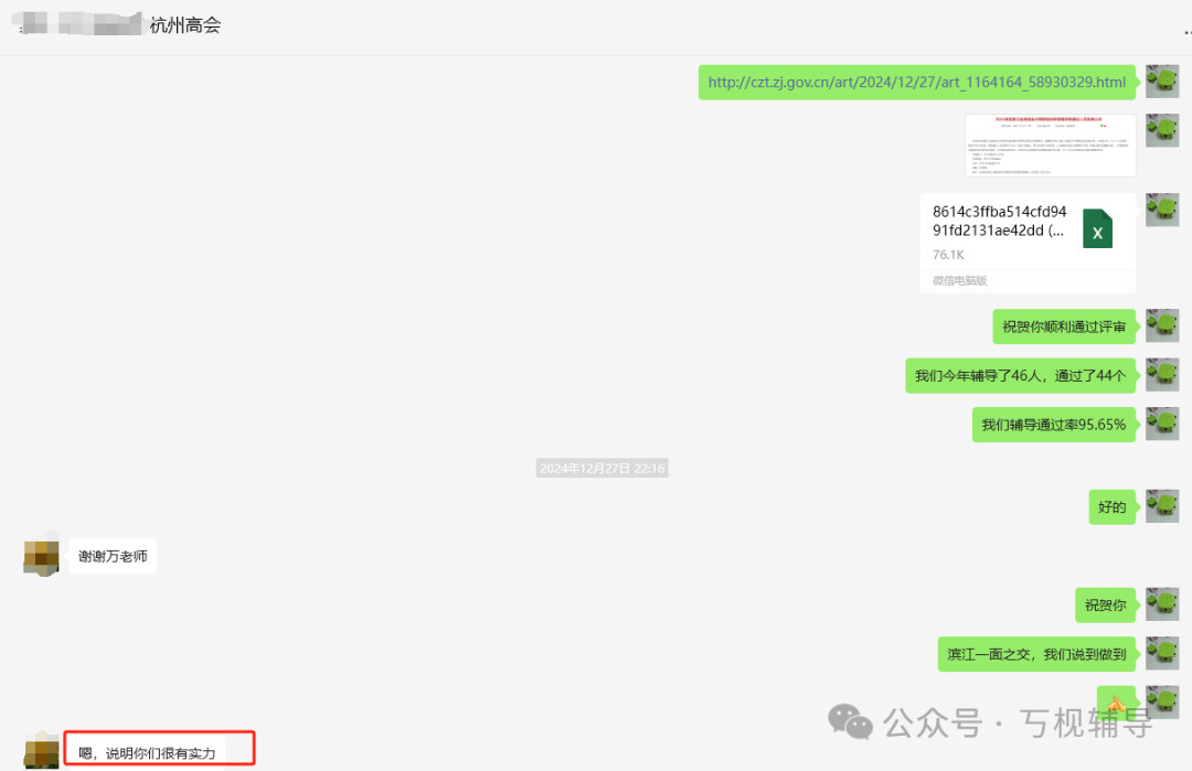 元旦前,浙江省财政厅公示了2024年度高会评审通过人员名单,万老师辅导团队通过率再创佳绩!辅导学员46人,通过44人,通过率达到95.7%!